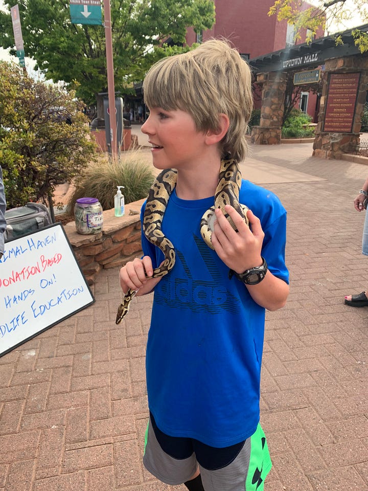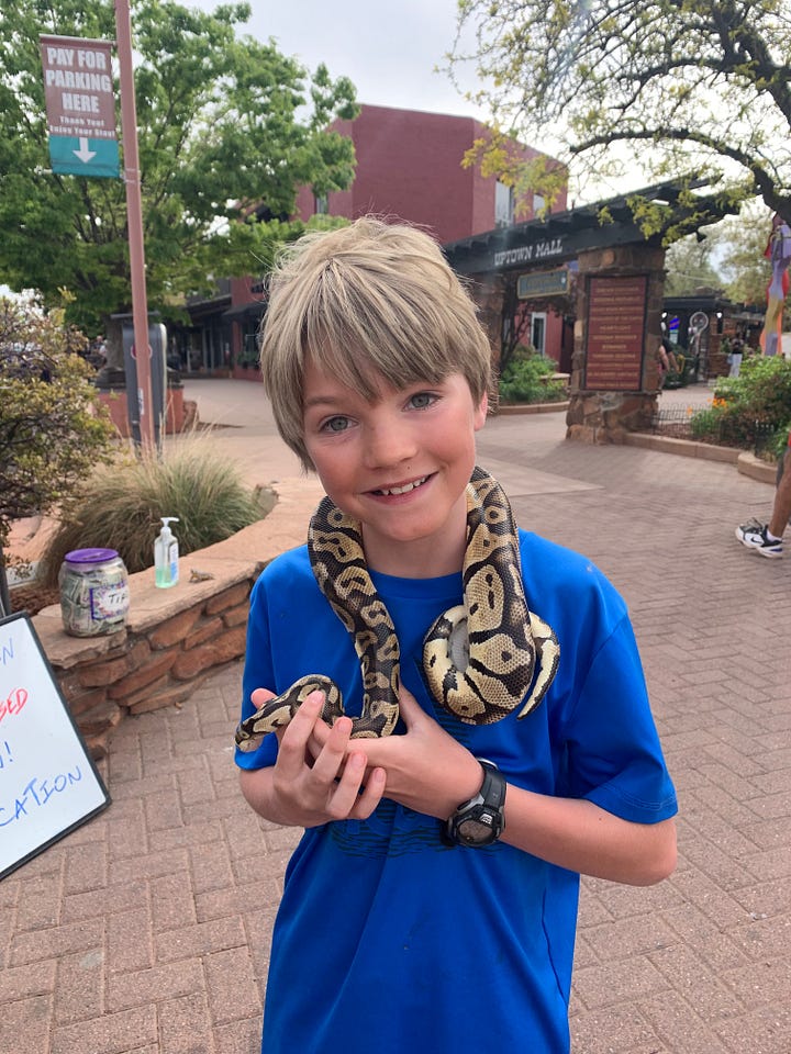 One highlight for our boys was that on the street there was a guy who was letting people hold reptiles he was taking care of. We stopped and our oldest was able to hold a ball python,which he enjoyed immensely.